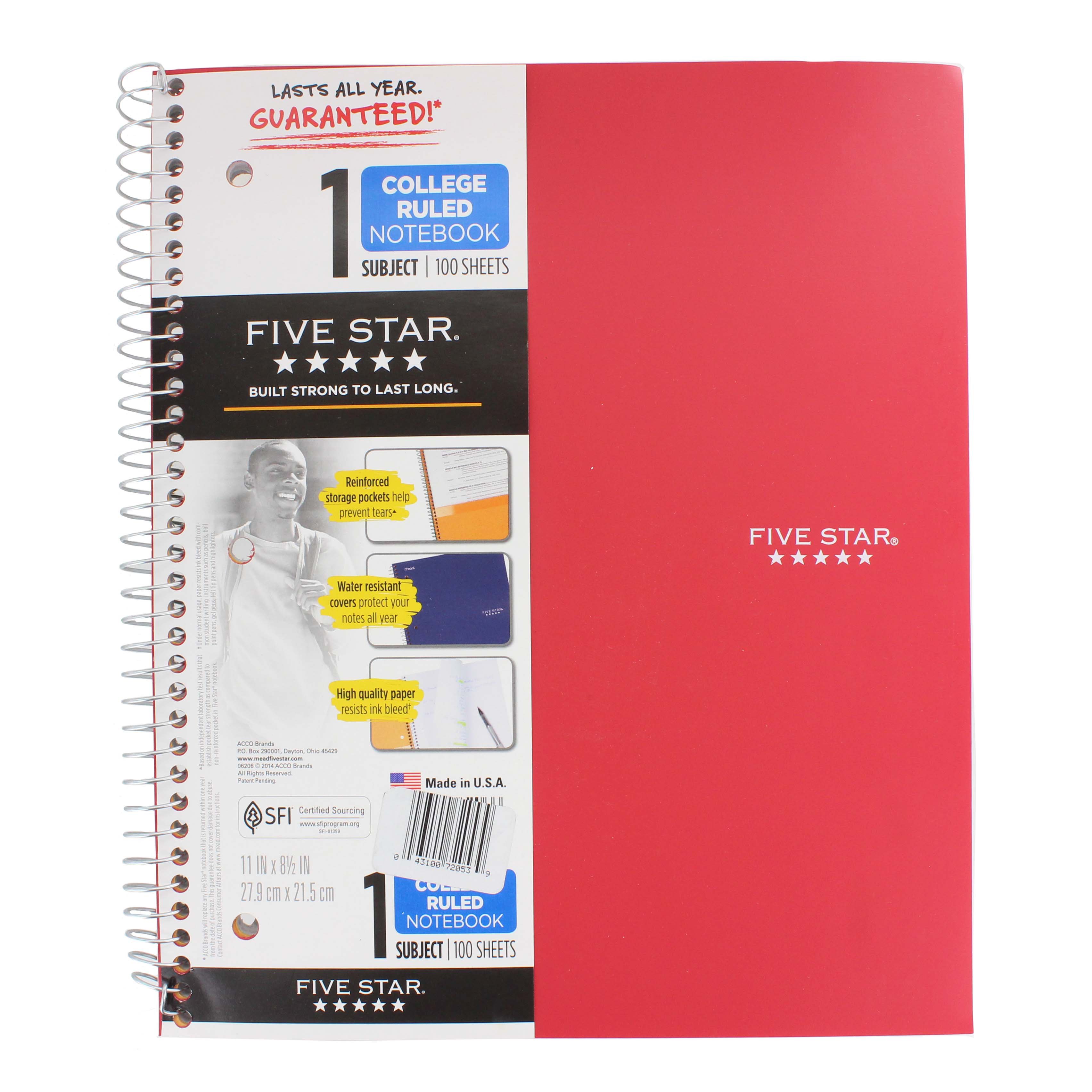 Five Star Spiral Notebook, 5 Subject, College Ruled Paper, 200 Sheets, 11" x 81/2 Staples Five Star 1 Subject Notebook get the organization you need with ultimate flexibility when you choose the five star. five star personal spiral notebook, 1 subject, college ruled, 7 x 4 3/8, assorted colors, 12 pack. Buy five star subject notebooks at staples and get free shipping on qualifying orders. five star 1 subject notebooks are wide ruled, ideal for class notes. Staples Five Star 1 Subject Notebook.